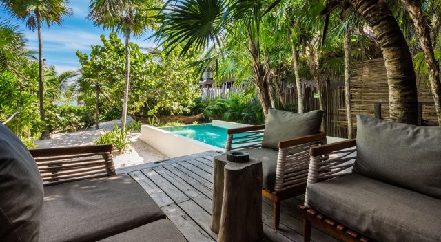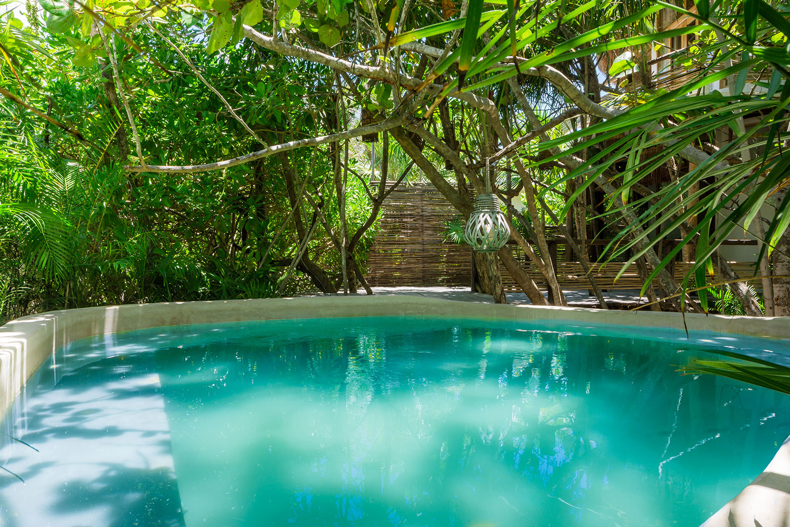 | Outdoor Features | Cenote-style plunge pool shaded by greenery, sunset-ready rooftop terrace, direct beach access, private garden paths |